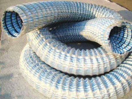 3、其联接采用绑扎法,接头处外包的土工织物需相互覆盖。